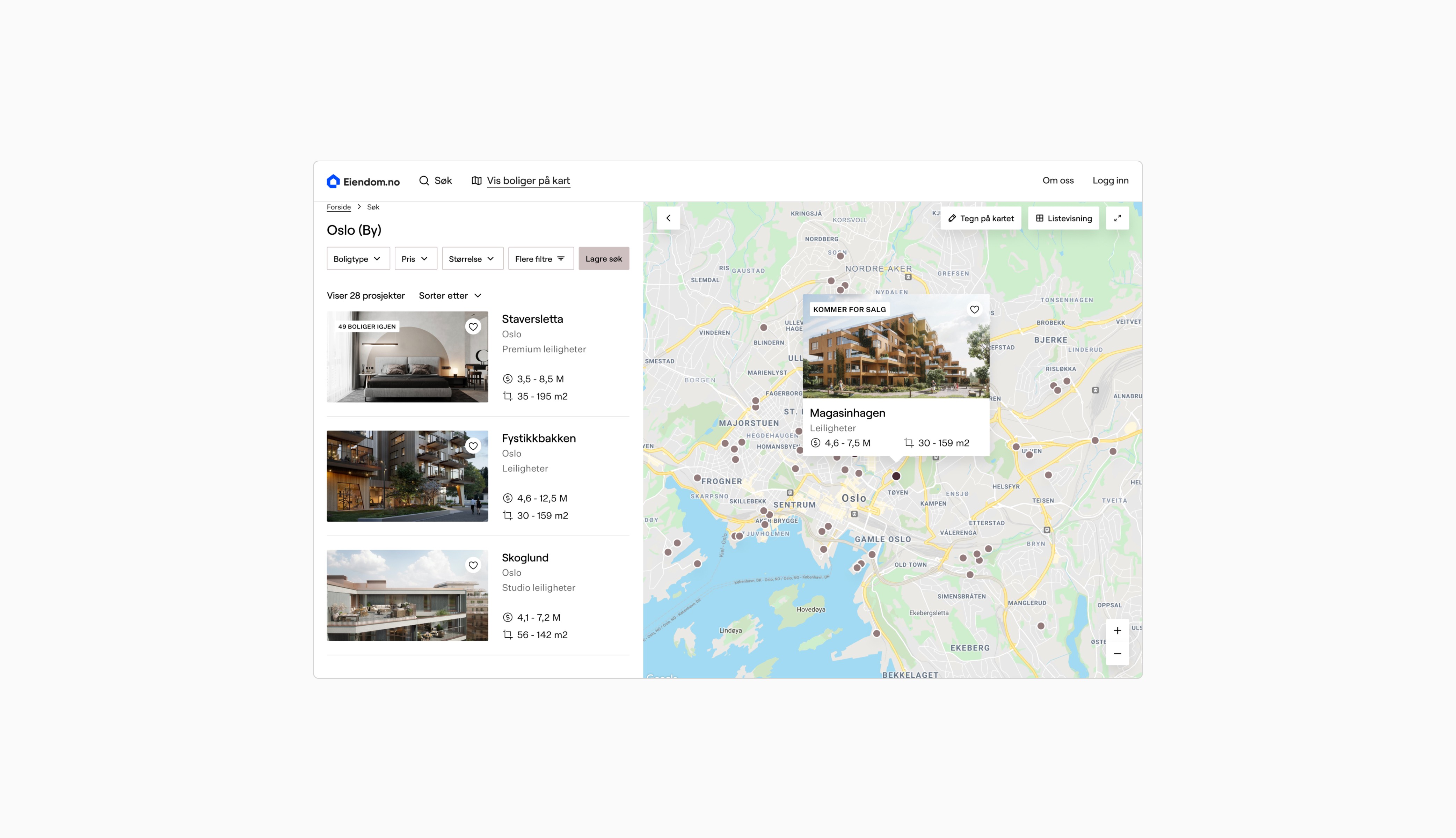 The Eiendom.no platform is designed for the property industry, allowing builders and developers to showcase new housing projects. My role involved redesigning the user experience to enhance functionality and user engagement.