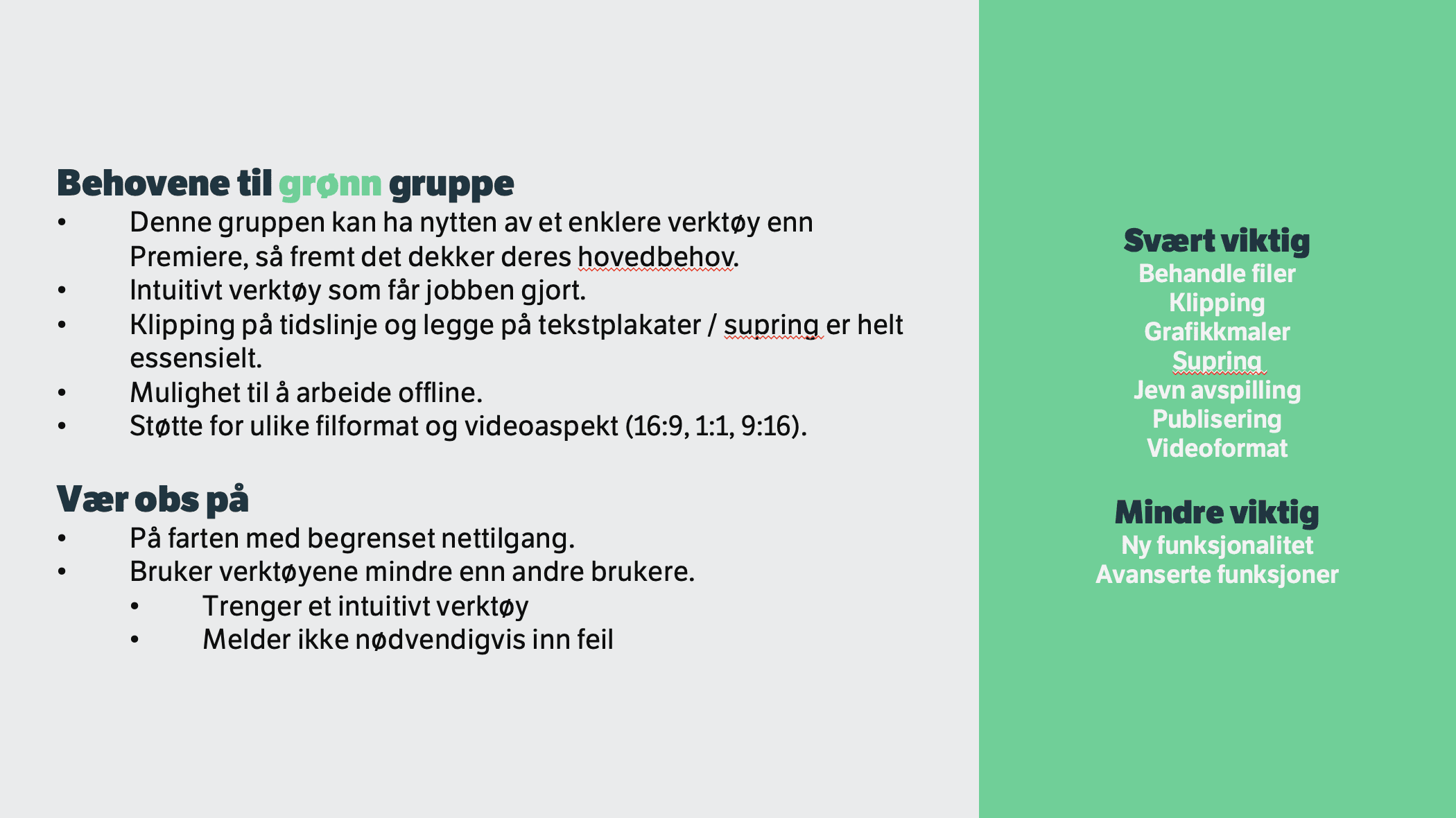 This project focused on gathering insights into how employees at NRK use video editing tools across the organization. Through qualitative and quantitative research, we identified key pain points and areas for improvement in both the tools and work processes.
